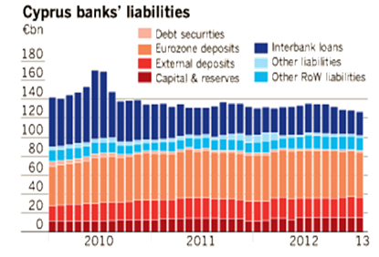 - Uniquely in the Eurozone, Cyprus’ banking sector is huge at eight times GDP;